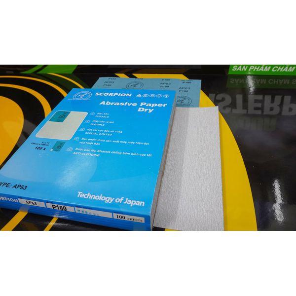 Giấy nhám hiệu Bò Cạp AP63 ( sản xuất trên dây chuyền máy móc Nhật Bản ) – chuyên dùng cho gỗ, bề mặt sơn PU, nhựa, đồ ngũ kim…